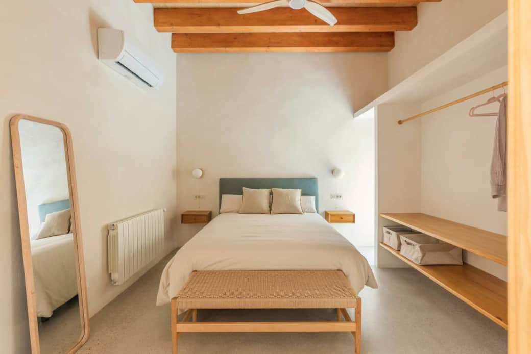 🛏 Distribución y Comodidades 5 habitaciones dobles con cama matrimonial, armario, ventilador de techo, calefacción y acceso directo al patio. Dos de ellas tienen salida directa a la piscina. Habitación principal con baño en suite, aire acondicionado y abundante luz natural. 3 baños: uno integrado en la habitación principal, un baño doble con ducha y WC separados, y un tercer baño más pequeño con ducha.